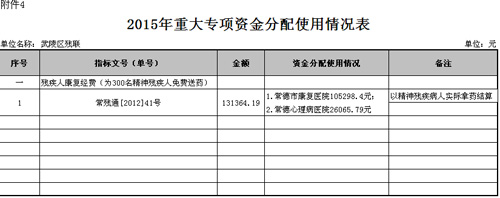 2015年重大专项资金分配使用情况表