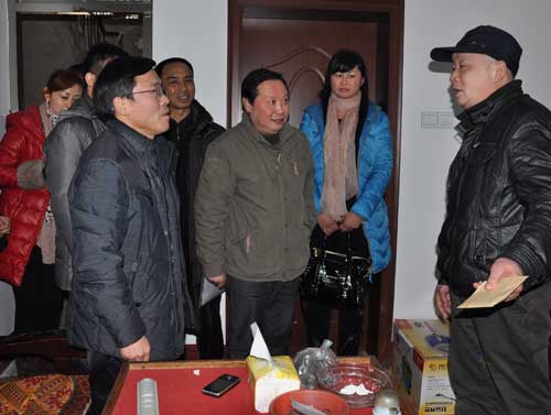 在城西街道滨湖社区56岁的肢体残疾人何建立的家里,李书记与老何拉起了家常,仔细询问他的身体、生活状况,得知老何与老伴为低保户,虽然生活困难,但街道社区对他们家十分关照,李书记十分高兴,要老何多多保重身体,并送去慰问金和节日祝福。