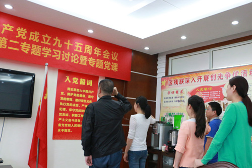 区残联庆祝中国共产党成立95周年开展“两学一做”第二次专题讨论和专题党课活动