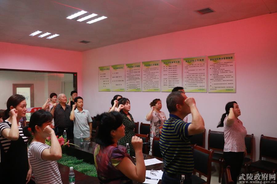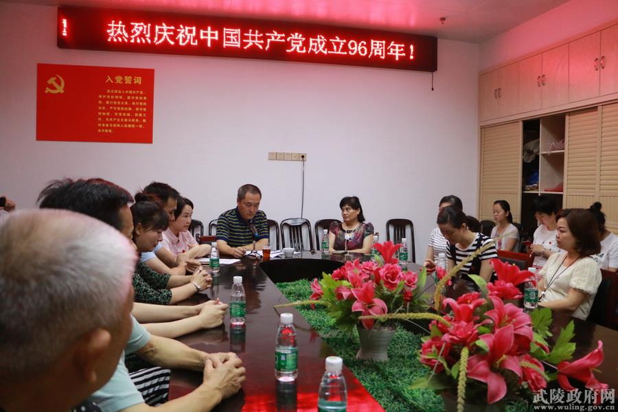 6月28日上午,武陵区残联机关党支部全体党员来到联点的半边街社区,通过重温入党誓词、上党课、慰问困难家庭等形式,与社区党员一道共庆建党96周年。