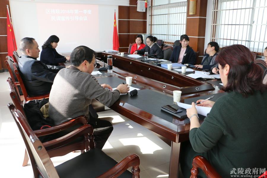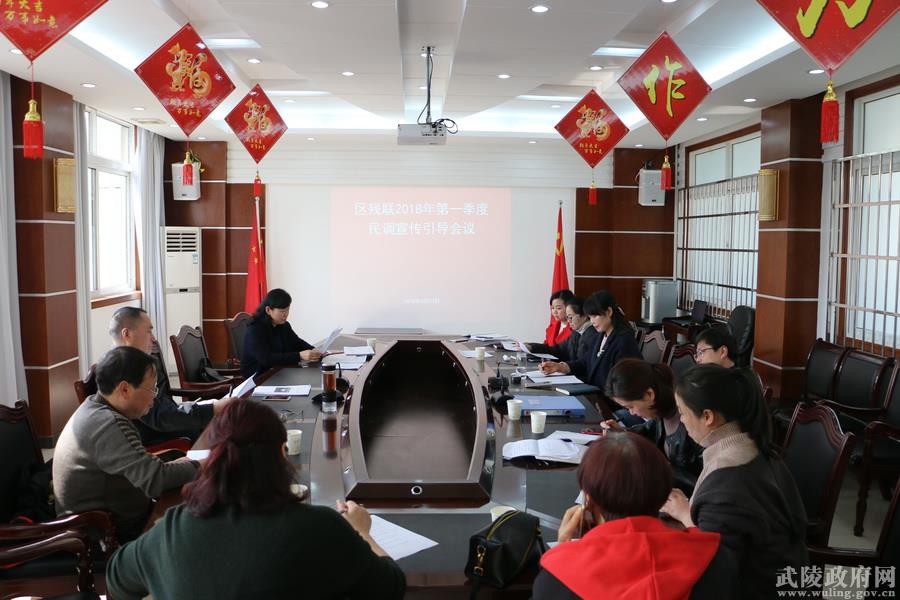 3月23日上午,区残联全体机关干部职工在五楼会议室召开2018年第一季度综治民调知识引导会议,积极营造单位及职工家庭平安建设工作氛围。
